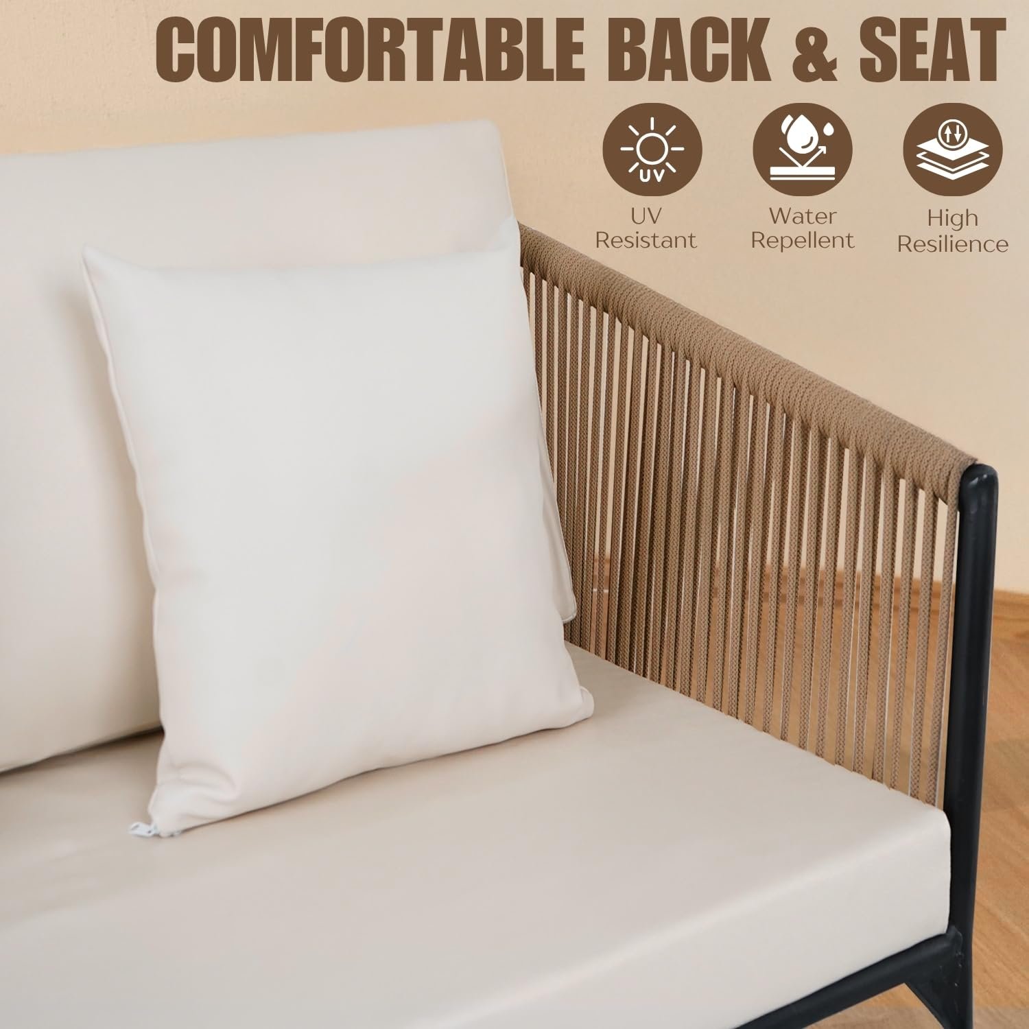 Made from high-quality materials, the modern Outdoor Sofa Set is built to handle outdoor conditions with ease. The weather-resistant construction helps it stay strong and beautiful even with regular use. The rope design gives it a contemporary and elegant appearance, making it suitable for both modern and classic outdoor dƩcor. Whether you want to enjoy your morning coffee, spend time with family, or host guests in the evening, this sofa set provides a cozy and inviting atmosphere.