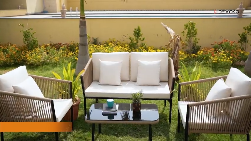 Comfort is one of the biggest benefits of the modern Outdoor 4 Seater Rope Sofa Set. The soft cushions and spacious seating arrangement make it ideal for relaxing for long hours. It is also easy to clean and maintain, which makes it a practical choice for everyday outdoor living. This sofa set can be placed in a garden corner, by the poolside, on a balcony, or in a patio lounge area to create a beautiful and functional seating setup.